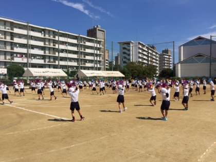 今日も朝からの雨で、運動場での練習ができませんでした。各学年とも限られた時間の中で練習に取り組んでいます。団体演技の練習の様子をご紹介します。写真上から順に、1年生の「笑−笑 〜シャオイーシャオ」、2年生の「燃えてヒーロー」、3年生の「HAPPY☆DANCE 3年」です。