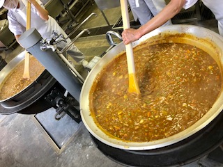 ポークカレーライスは豚肉、たまねぎ、にんじん、じゃがいも等が入った児童に人気の献立でした。また、ルウの中には「ハート形」のラッキーにんじんが入っていました。