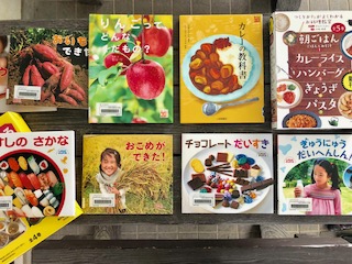 また、今年も新たに給食図書が学校に届きました!今年は絵や写真が多くてわかりやすい図解やレシピの図書をそろえました。