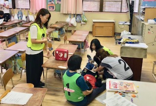 放課後に、二学期の給食研修会を職員全員で行いました。今回は食物アレルギーが発症した時の対応をシミュレーションする訓練で、教室と職員室のグループに分かれて行いました。アナフィラキシーショックをおこした児童を担任が発見して、救急隊に引き渡すところまでをそれぞれの役割に分かれて行いました。