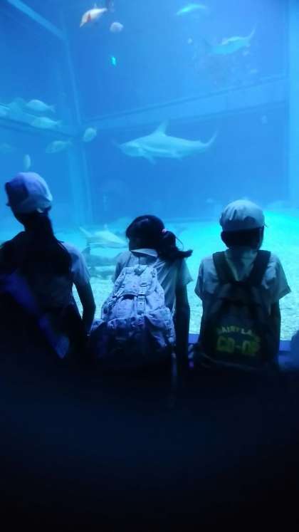 今にも雨がふりだしそうなお天気の中、元気いっぱいの四年生は海遊館にいってきました。