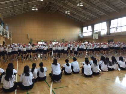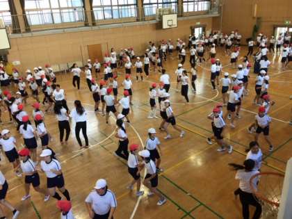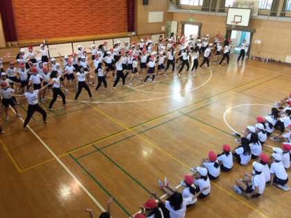 Greeeenの「あいうえ音楽」の曲に合わせての早い振り付けでしたが、高校生の人たちが常に笑顔で、元気に教えてくださるので、6年生の子どもたちも自然と笑顔でダンスを楽しんでいました。授業が終わった後も、ハイタッチをしたり、手を振ったりして名残惜しそうにしていました。