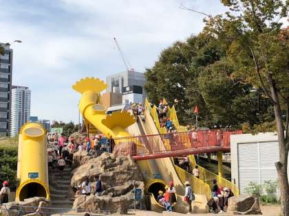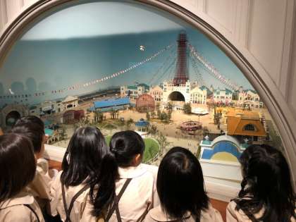 10月22日(月)朝から良いお天気の中、3年生は、秋の遠足でくらしの今昔館へ行ってきました。くらしの今昔館では、昔の道具についてのお話を聞いたり、クイズに答えたりしました。その後、約200年前の大阪を再現した街並みをみんなで歩きました。いろいろなお店の様子や暮らしの様子にみんな興味を持って見学していました。くらしの今昔館の後は、天神橋筋商店街を通って、扇町公園へ行きました。商店街で人通りの多さや商店街の長さに驚いていました。扇町公園では、楽しみにしていたお弁当をみんなで食べて、公園の遊具で遊びました。急な滑り台を滑ったり、ボルダリングをしたりして楽しみました。