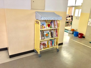 移動式給食図書コーナーは、2階の中央階段付近へ移動しました。