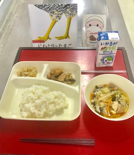 明日の献立は、「赤魚のしょうゆだれかけ・さつまいものみそ汁・こまつなのいためもの・ごはん・牛乳」です。明日から11月の献立となります。明日の献立も楽しみにしていてくださいね。