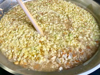 下段の写真は、けんちん汁を仕上げているところです。