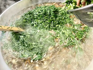 もずくのスープは、鶏肉、とうふ、もずく、にら等が入った、汁もの料理でした。