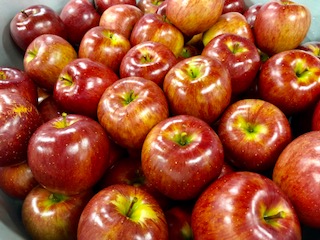 りんごは、1人に1/4個付きました。本日は、青森県産の「シナノスイート」でした。