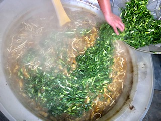 下段の写真は、カレーうどんに青ねぎを入れて、仕上げているところです。