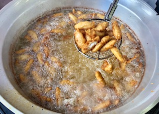 たらのフライは、新しい食材で本日、初めて給食で食べました。冷凍のスケトウダラのフライを揚げた、揚げもの料理でした。