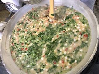 中段の写真は、みつばを加えて、ぞう煮を仕上げているところです。