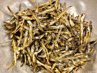 下段の写真は、たれをからませた、ごまめです。