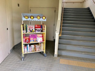 移動式給食図書コーナーは、1階の西階段へ移動しました。
