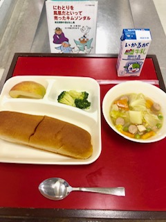 喫食後の児童の感想は、「鶏肉と野菜の洋風煮のにんじんが特に美味しかった。」「ブロッコリーのサラダの味つけや食感が美味しかった。」等がありました。