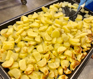 喫食後の児童の感想は、「カレー煮のミートボールが美味しかったです。」「焼きじゃががホクホクしていて美味しかったです。」等がありました。