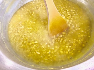 下段の写真は、くりきんとんに調味料を加えて煮含めているところです。