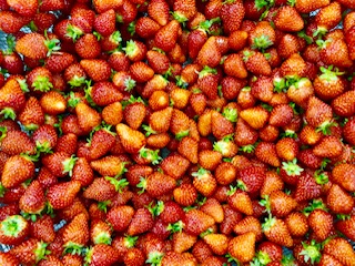 下段の写真は、本日登場したいちごです。全部で約1900個ありました。