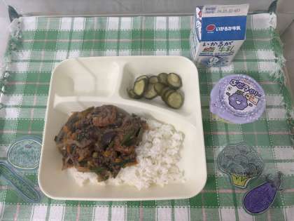 ※マーボーあつあげ丼 ※きゅうりの中華あえ ※ぶどうゼリー ※牛乳