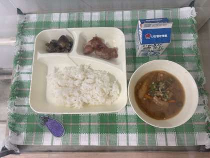 ※鶏肉のてり焼き ※とうがんのみそ汁 ※なすのそぼろいため ※ごはん ※牛乳