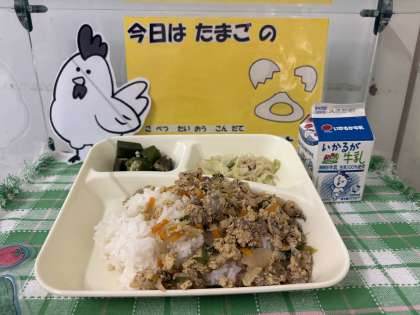 ※他人丼  ※ささみとキャベツのいためもの  ※オクラの甘酢あえ  ※牛乳