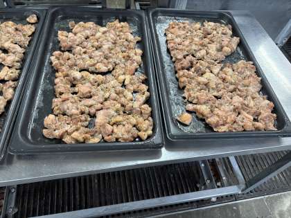 ▲「ベーコンと野菜のスープ煮」は、「大豆」の除去食献立です。