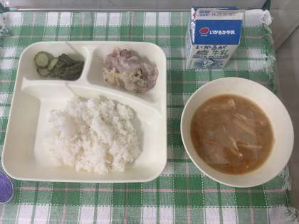 ※鶏肉の塩こうじ焼き ※さつまいものみそ汁 ※きゅうりの甘酢あえ ※ごはん ※牛乳