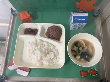 ※和風ハンバーグ ※五目汁 ※金時豆の煮もの ※ごはん ※牛乳