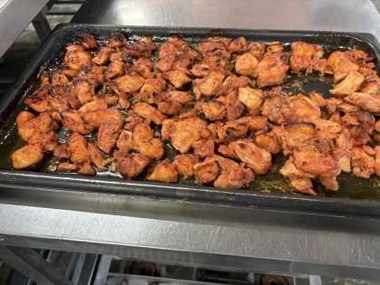※写真は、鶏肉のチリソース焼きが出来上がったところです!いい香りがしますよ!