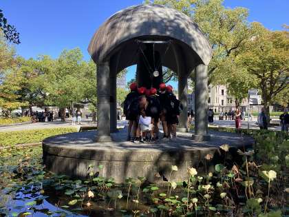 平和への願いを込めて、鐘をつきました。