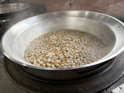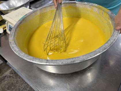 ※写真は、かぼちゃういろうの材料をしっかり混ぜているところです!
