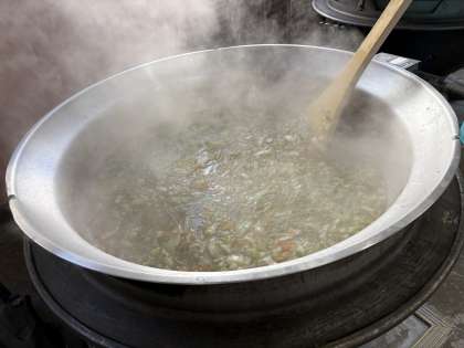 今日の「いかてんぷら」は、いかに小麦粉とでん粉で作った衣が付いたものを、給食室であげています。