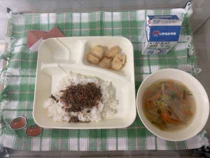 ※いかてんぷら ※五目汁 ※おかかなっ葉 ※ごはん ※牛乳