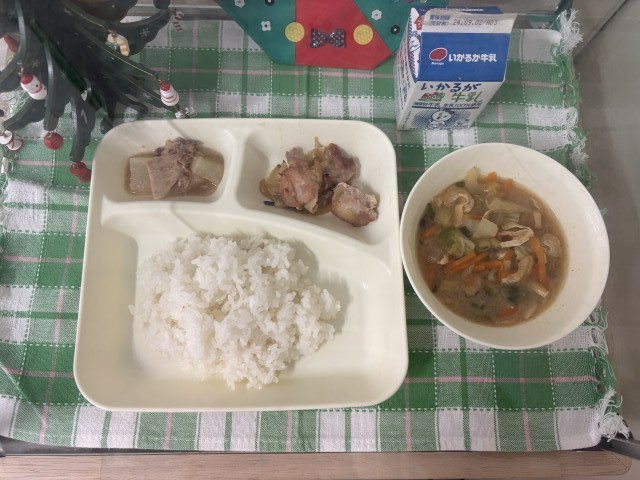 ※鶏肉の甘辛焼き ※みそ汁 ※だいこんの煮もの ※ごはん ※牛乳