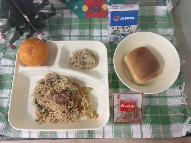 ※和風焼きそば ※もやしのしょうがづけ ※みかん ※ミニコッペパン ※牛乳