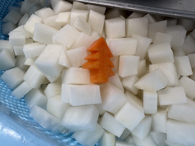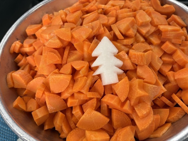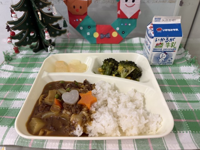 ★今日のカレーライスには、星形や、ハートのほかに、クリスマスツリー型のラッキーにんじんも入っています!