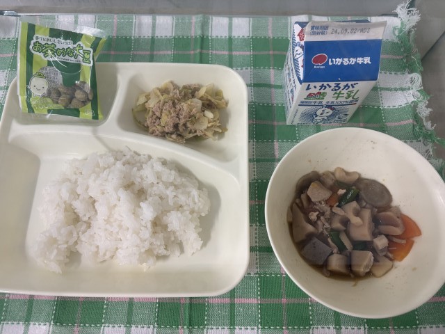 ※筑前煮 ※ツナとキャベツのごまいため ※まっ茶大豆 ※ごはん ※牛乳