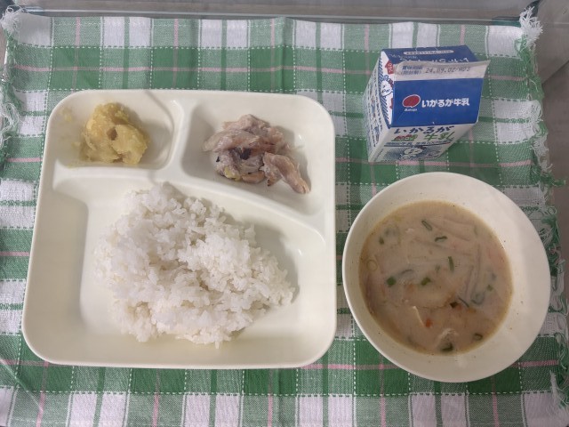 ※鶏肉の塩こうじ焼き ※かす汁 ※くりきんとん ※ごはん ※牛乳
