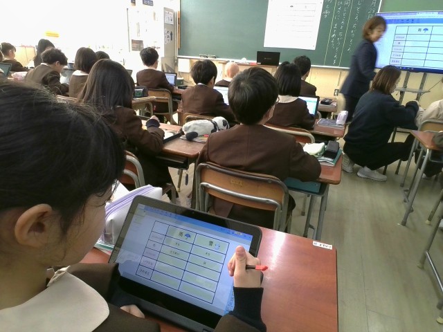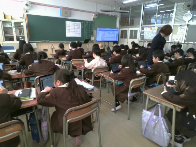 子どもたちは一人一台端末をスムーズに扱い、「発表ノート」に記入して提出し、共有していきました。