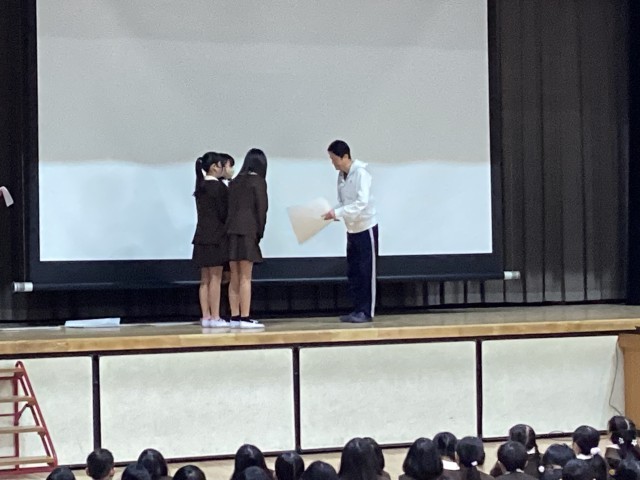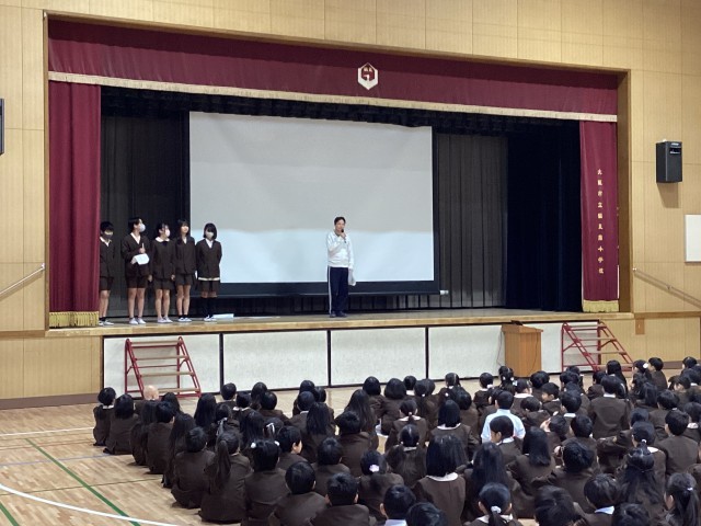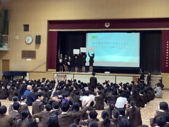 1月24日~30日までは全国学校給食習慣です。集会では、給食委員会の児童がクイズで場を盛り上げていました。