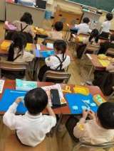 朝の時間に、6年生がなかよし集会で1年生が首にかけるカードを持ってきてくれました...