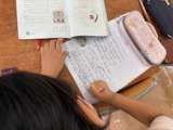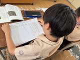 算数の学習の様子です。 たし算と引き算の筆算の復習をしています。 教科書の問題を...