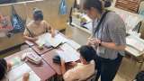 習字の様子です。初めての毛筆のため、用具の準備、書くときの姿勢、筆の持ち方を確か...