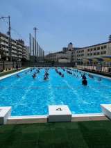 4年生プールの様子です。最初に運動会で行ったモンスターダンスをプールの中でやり、...
