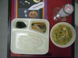 本日の献立は「なまりぶしのしょうが煮・みそ汁・ほうれん草のごまあえ・ごはん・牛乳...