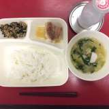 本日の献立は「まぐろのしょうゆマヨネーズ焼き・とうふのみそ汁・茎わかめのつくだ煮...