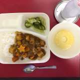 本日の献立は「シーフードカレーライス・グリーンサラダ・パインアップル(缶)・牛乳...