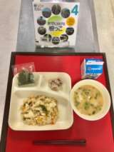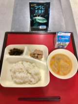 2月19日(金)の献立は、「ごはん・まぐろの甘辛焼き・豚汁・くきわかめのつくだ...