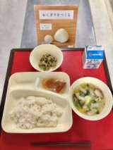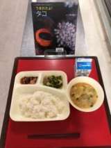 2月8日(月)の献立は、「ごはん・泉だこのやわらか煮・みそ汁・こまつなの煮びた...