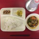 本日の献立は「肉じゃが・はくさいのゆず風味・とら豆の煮もの・ごはん・牛乳」でした...