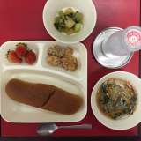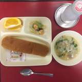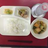 本日の献立は「鶏肉のてり焼き・さつまいものみそ汁・きんぴらごぼう・ごはん・牛乳」...